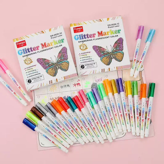 Guangna 6620 Glitter Markers Highlighter Pens Fine Point Fluorescent Color for Journaling Coloring Drawing Lettering...