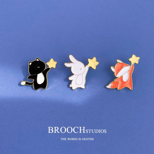 Adorable Star-Plucking Bunny Brooch | Festive Enamel Pin!Cute beyond words! This enchanting Japanese-style enamel pin...