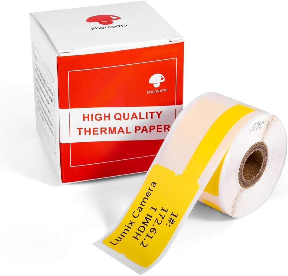 Phomemo Cable Label/Wire Lable, Yellow, 0.98″x1.5″-1.57″ (25×38-40mm) 100 Labels/Roll for Phomemo M110/M200/M120/M220 Label Printer