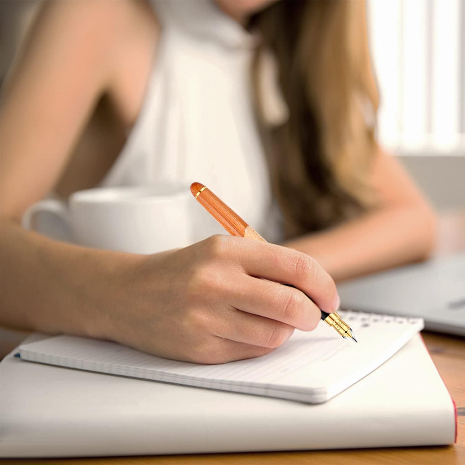 Wooden Fountain Pen Gift Set, with Business Fountain Pen, Pure Handmade Wooden Fountain Pen Display Box and Refill, Beautiful Natural Log Writing Fountain Pen