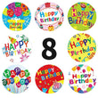 Assorted stickers. Comes with 8 different patterns, they feature classic birthday-themed patterns like balloons, birthday hats, cakes, candles, fireworks and more, perfect for decorating your party.