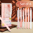 SHANDS 12-Pack Jumbo Ink Quick-Dry Pen Sets (Peach & Coffee Series) - 0.5mm Black Gel Pens with Highlighters, Smooth Writing Office & School Supplies (5 Pens + 1 Marker per Theme)