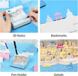 Can be used as a non-sticky note, bookmarks, pen holder, desk calendar and night light ;