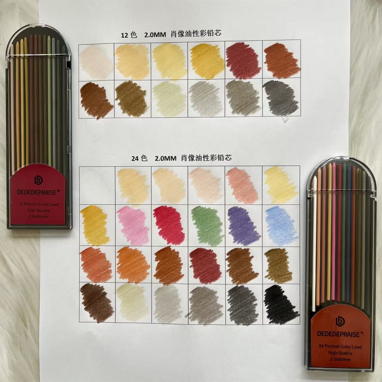 The heart of this set is the 2.0mm oil-based colored graphite leads. Our carefully curated palette includes a specialized range of natural skin tones, allowing for lifelike portrait and character work, alongside a full spectrum of vivid colors for any creative project. These high-quality, oil-based leads deliver rich, blendable pigmentation, smooth laydown, and excellent coverage. Each lead is 2.0mm in diameter and 90mm in length, offering durability and a firm fit in your lead holder.