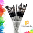 24-Piece Painting Brush Set: Acrylic painting set includes 24 brushes. Whether it's extreme detail or large areas, these round, square, scalloped and flat brushes work great.