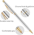 6 Pack Steel & Gold Stainless Steel Ballpoint Pens Black Ink Medium Point, Slim Metallic Retractable Twist Pens Nice Gift for Business Office Students Teachers Wedding Christmas