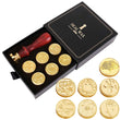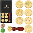 Wax Seal Stamp Set, 7 Piece Set Pieces Sealing Wax Stamps Copper Seals 1 Piece Wooden Hilt, Retro Classical Initial Seal Wax Stamp Kit for Cards Envelopes, Invitations, Wine Packages
