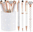 8Pcs Crystal Glitter Ballpoint Pens with Pen Holder for Desk Organizer