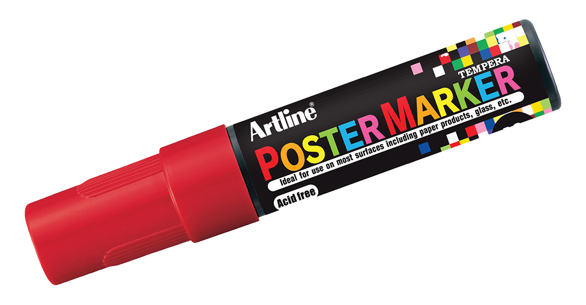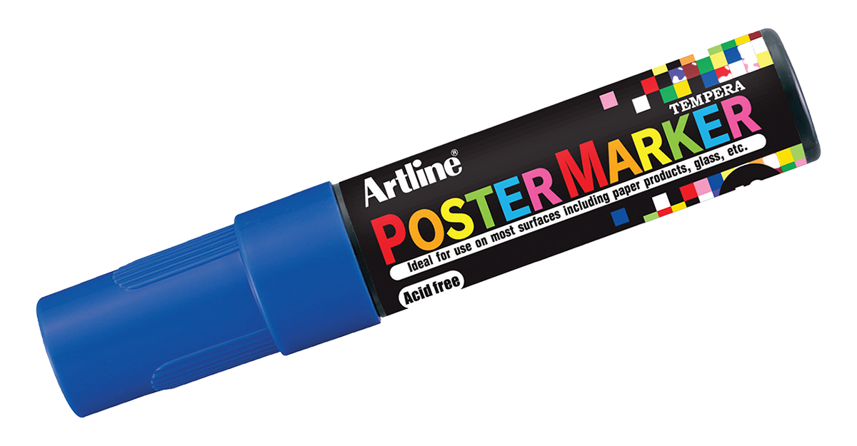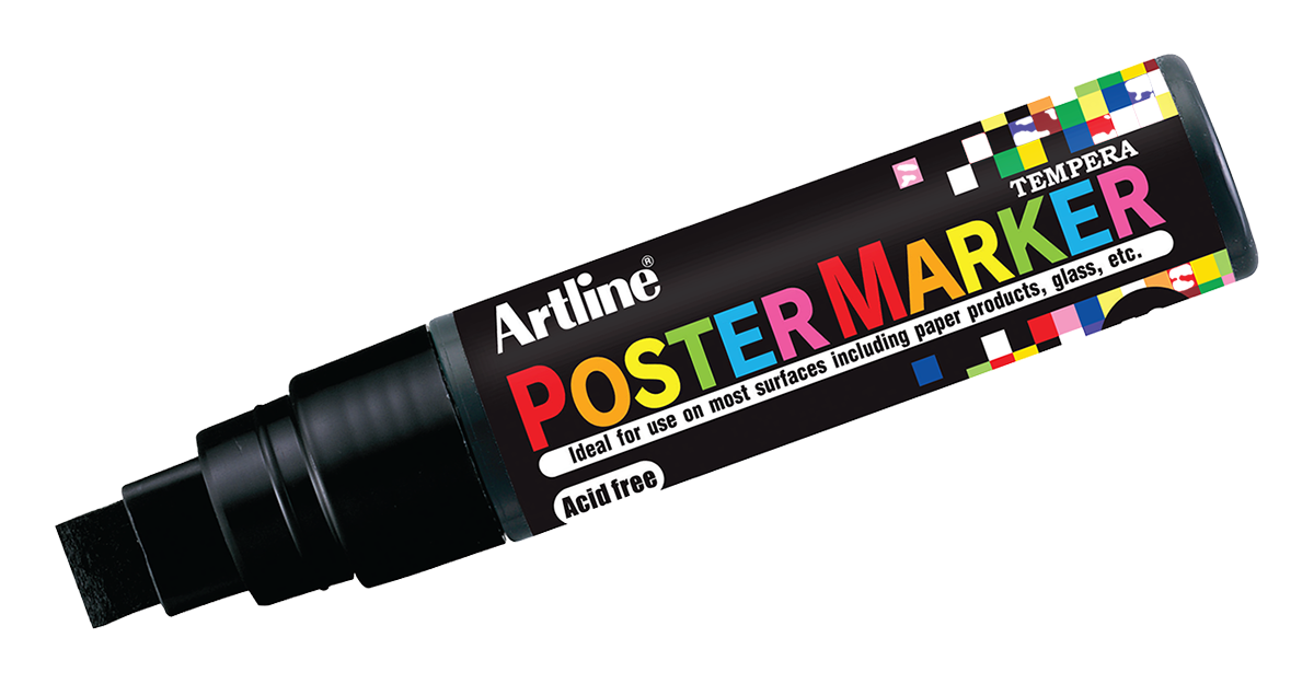 Artline [EPP-12] 12.0mm Flat Tip Poster Markers. Show off your artistic skills; great for creating bold, colorful art and lettering on paper products, metal, plastic, glass, wood, rubber, and stone. These poster markers deliver a highly opaque pigment ink with superior water and fade-resistant performance. Allows over-painting without bleed-through. Versatile for arts & crafts projects, signage, and graphics, and easily washes off non-porous surfaces. Liquid ink is xylene-free and acid-free. AP certified.