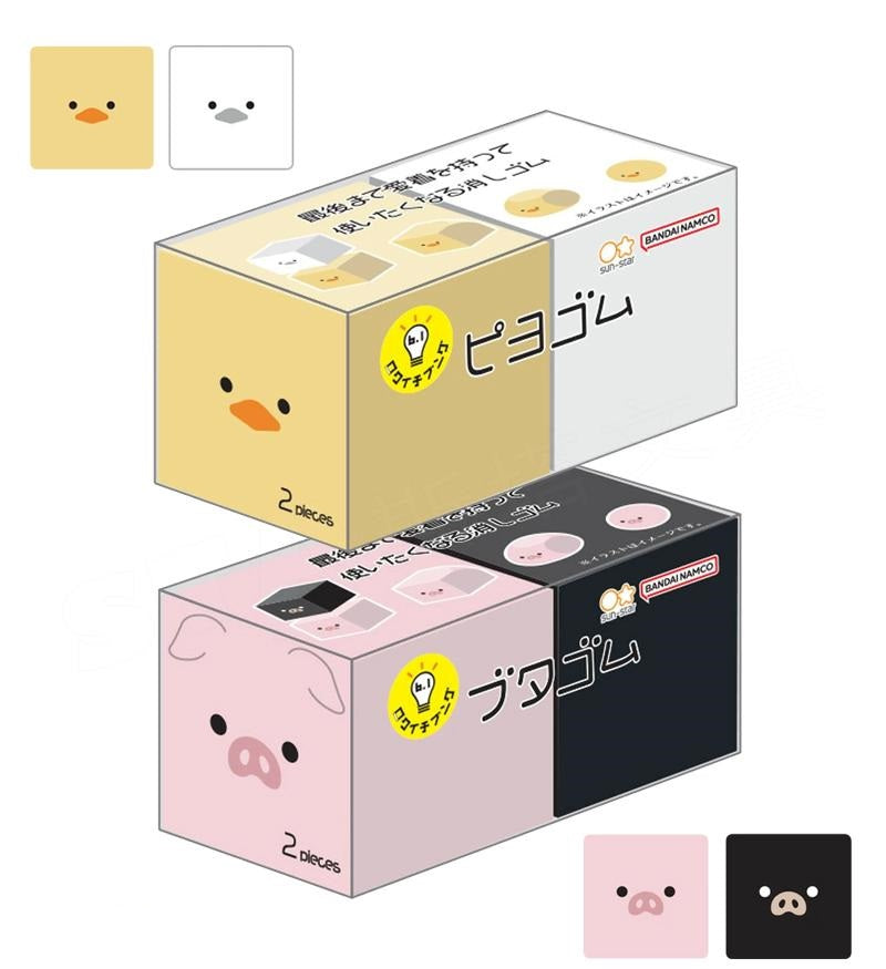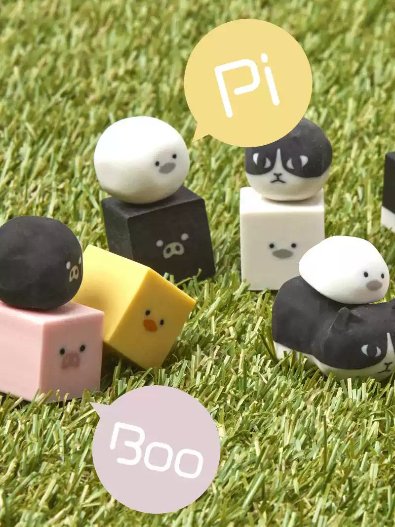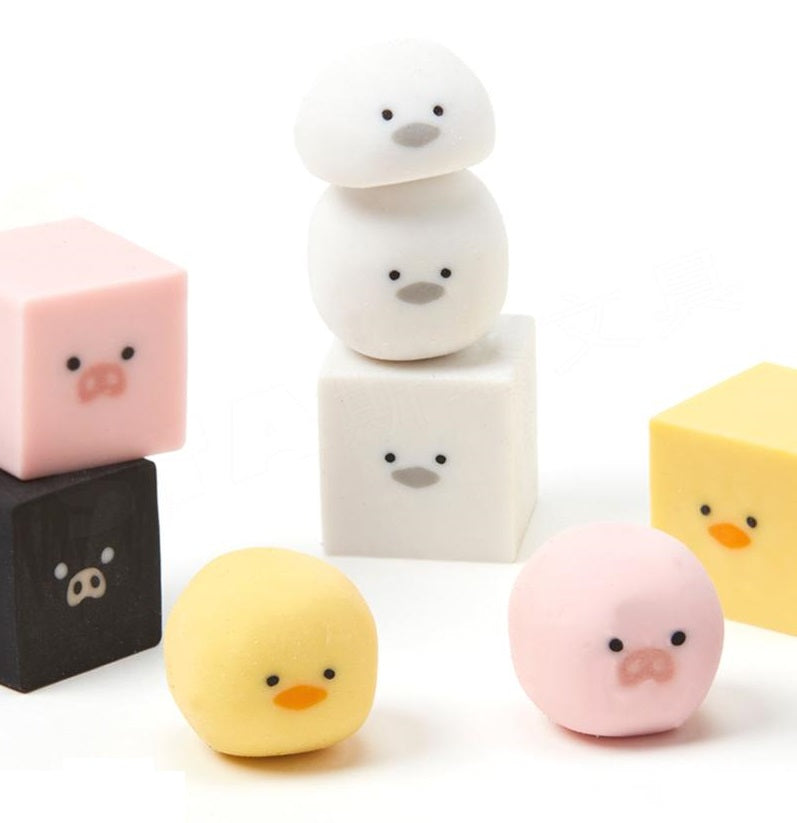 Sun-Star Animal Transformable Eraser Transforms with Use Cute Healing Tuxedo cat Shiba Inu Duckling Piglet