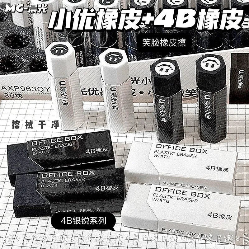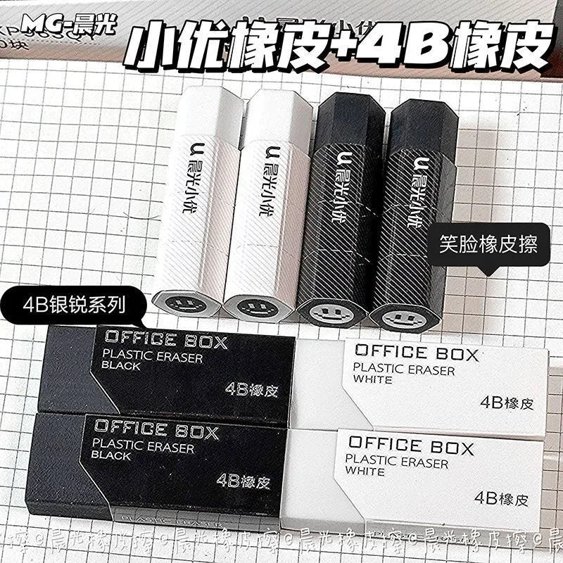 M&G 4B Eraser: Black White Minimalist, Clean & Artistic!