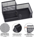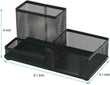 Comix B2061 Mesh Pen Pencil Holder with Post It Note Holders Desk Organizer, 3 Compartment Wire Desktop Pen Pencil Cup Caddy Office Supplies Accessories for Home Office School, Black