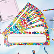 These colorful dots name tags can be applied as desk tags, invitations, postcards or gift cards for craft projects, games and more. Add some styles to displays and doors, dress-up your classroom, create awards, decorate for parties, also good to add different feelings to table centers, lockers, etc.