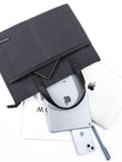 Large Front Organizer Pocket: The full-width front pocket unzips to reveal storage for phones, pens, and smaller items in the organizational panel.
