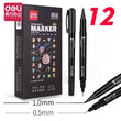 DELI S563 Fine/Ultra Fine Twin Tip Permanent Art Marker Pens, Black Oil Based Ink Markers (Pack of 12)