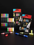 FABRIC & PERMANENT MARKERS: Designed with high-quality, water-based acrylic paint markers, dual-tip markers deliver quick-drying, smooth application in vibrant, fade-resistant colors. Perfect for both indoor and outdoor use, these versatile paint pens work on paper, metal, plastic, glass, fabric, and wood. Prep, shake, and start creating bold, lasting art with these metallic markers