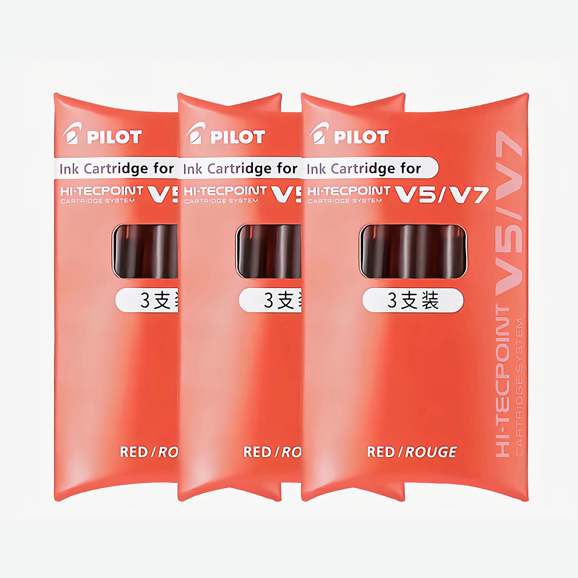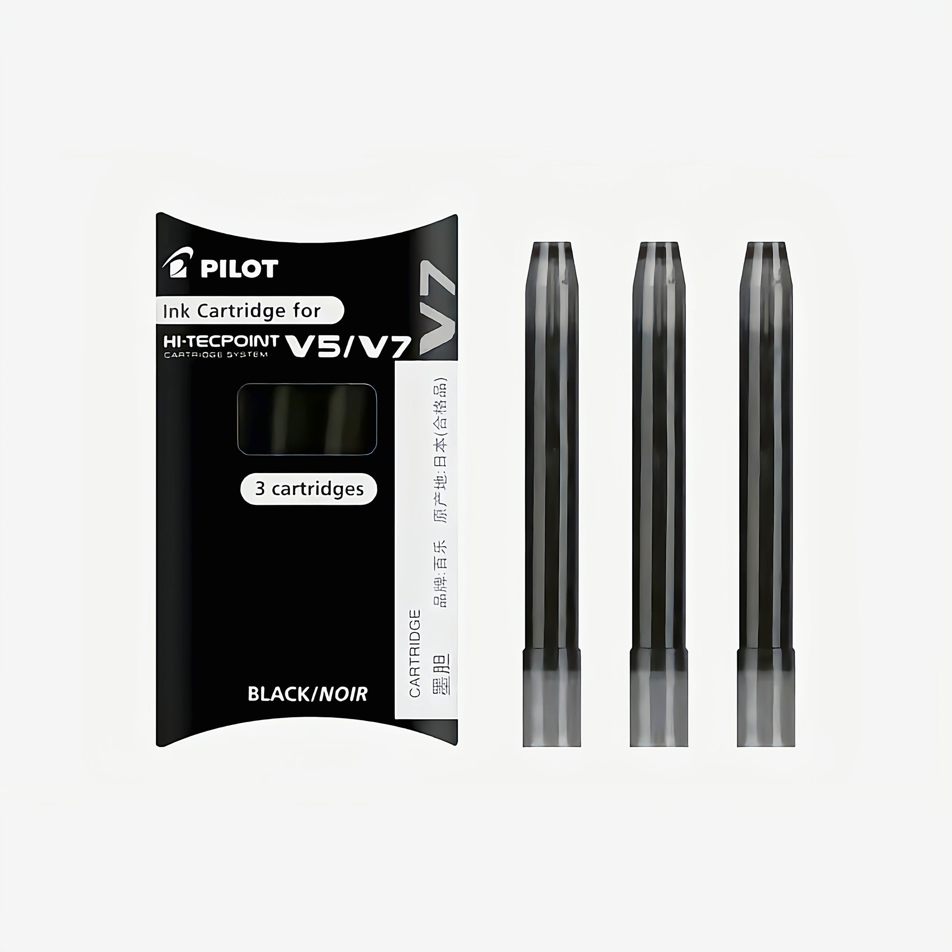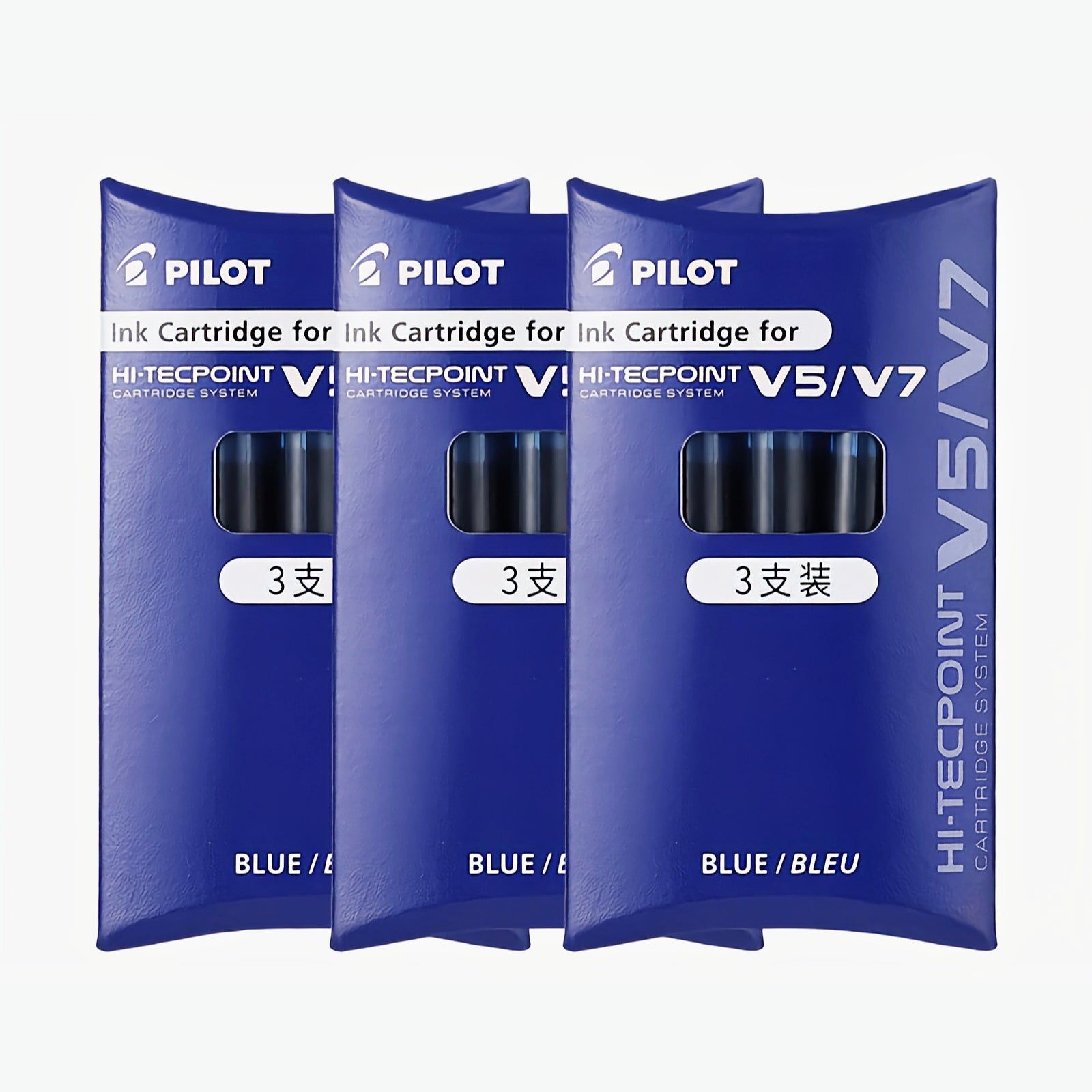 • Close-up/Single Pack: Genuine Pilot V7 replacement ink cartridges, 3-pack, made in Japan.