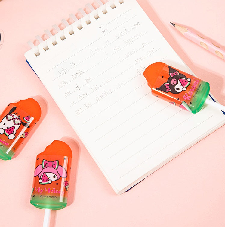 6 x Guangbo Sanrio Watermelon Series 3D Lollipop Erasers