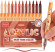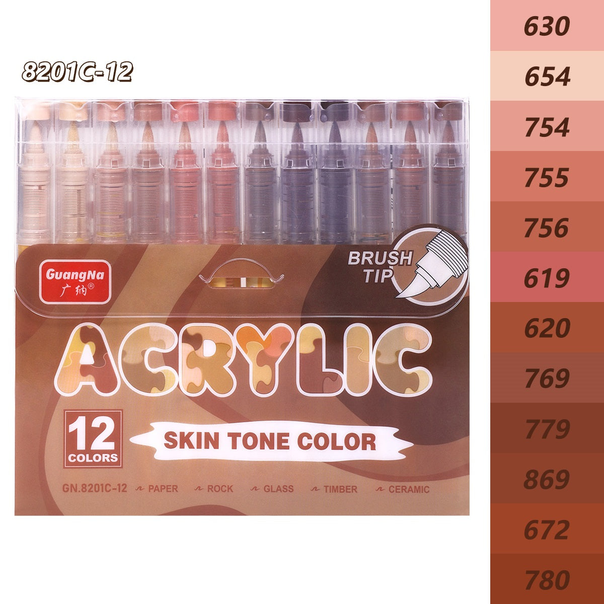 Guangna 8201 Acrylic Paint Markers 12 Skin Tone Colors Soft Brush Tip