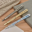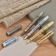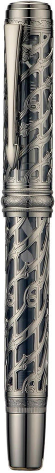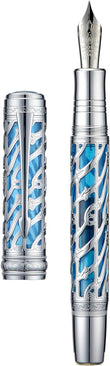 Artistic Design - Silver Streamlined Hollow Skeleton & Light Blue Translucent Resin design create a sense of perspective, space and layering, offering a premium visual artistic experience when using it writing. The surface of the skeleton is carved with vivid patterns and line details through a precise etching process.