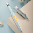 Hongdian C3 Fountain Pen, Iridium Fine Soft Nib Chinese Knot Carving, Light Blue & Little Daisy Painting Design with Metal Box Set