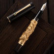Hongdian N24 Fountain Pen Fine Nib, Golden Dragon Loong Year Stereoscopic Carving with Red Wood Design