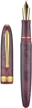 Hongdian N9 Fountain Pen, Extra Fine/Long Knife Medium Nib Gold Trim, Wine Red/Jude White Color & Acrylic Design with Converter and Metal Pen Box Set