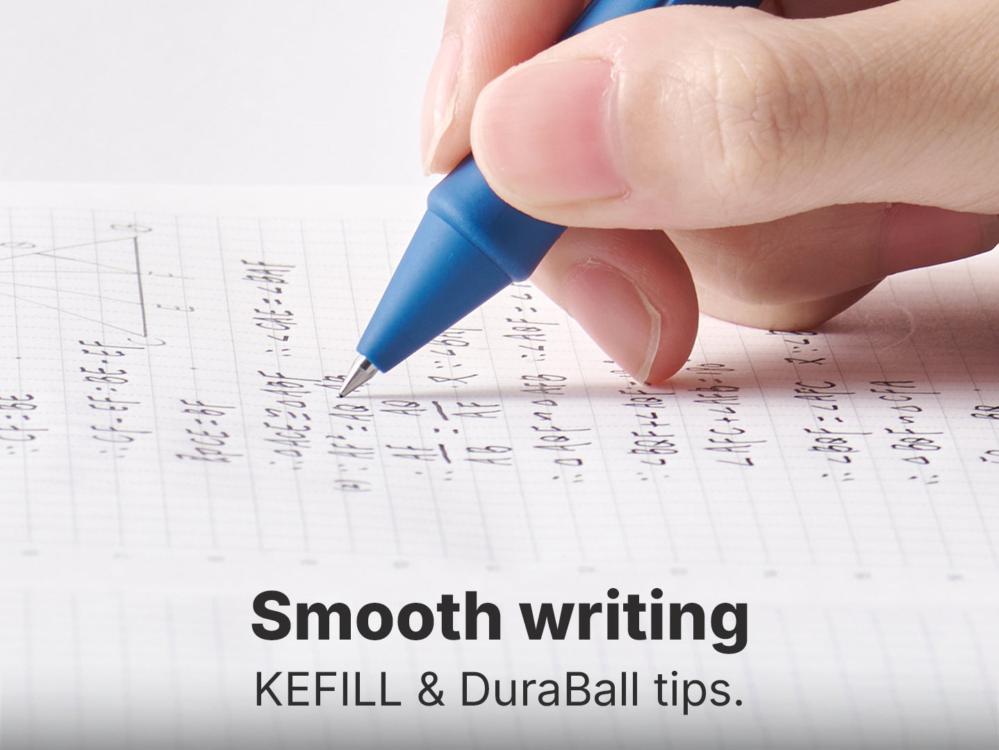 DuraBall tip for broad view, comfortable writing experience. Enhanced stability for better and longer writing.