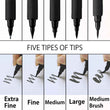 [5 PENS SET] It included 5 brush pens(Extra Fine/ Fine/ Medium/ Large/ Medium Brush). Brush pen with an easy-to-hold, rubber grip that is comfortable and prevents slipping. Designed to mimic the look of traditional, bamboo brushes.