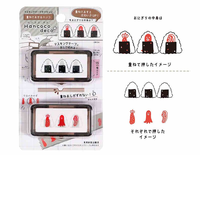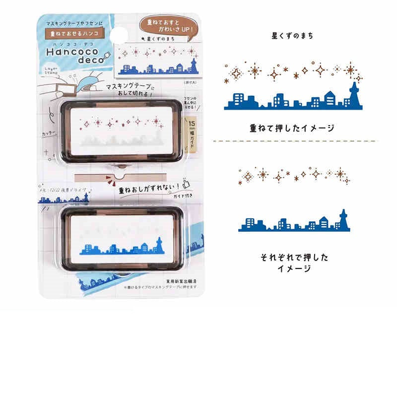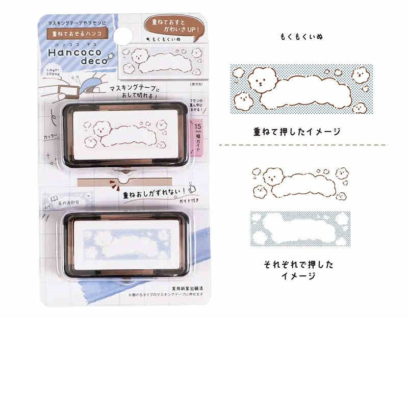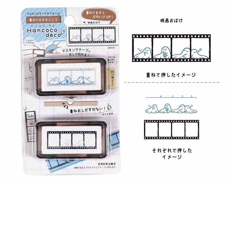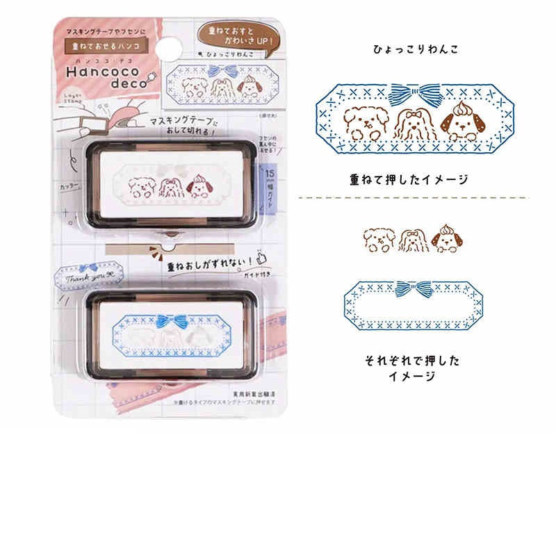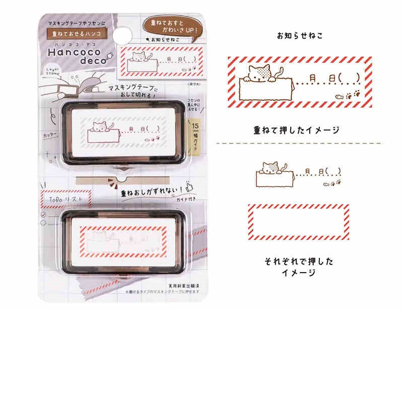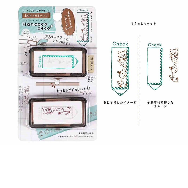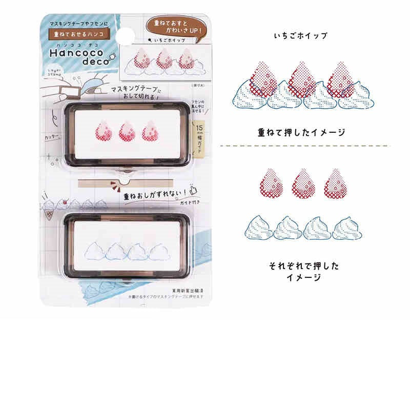 The Kutsuwa Hancoco Deco Stamp creates cute, layered stamp designs. It’s ideal for decorating matte washi tapes (we recommend the mt "Kaku Kaku" or "Write and Draw" washi tapes that have a writable surface), letters, sticky notes, planners, and more. The Hancoco stamp also features a built-in serrated guide/edge to cut stamped masking tape to a neat 5cm width and help center designs on sticky notes. This unique layering stamp adds a fun and creative touch to any paper craft.