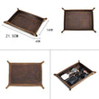 DIMENSIONS: The leather tray organizer measures 21.5 x 16 x 4 cm (width x length x height). Takes up little space to keep your small but important items in place, not only for home and office use, but also for travel. It is also easy to clean and durable for use.