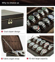 Leather 10 Slots Watch Case Zippered Storage Box for Travel Display