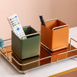 Leather Pencil Holder Desktop Organizer Iron Art Desktop Makeup Brush Remote Control Storage Box Office Pen Holder for Desk