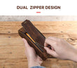 Pen Case Leather Pouch, Crazy Horse Cowhide Leather Zipper Pencil Case Leather, Portable Pen Bag Pouch Leather Cosmetic Case(Coffee)