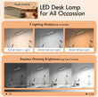 3 Color Temperatures & Stepless Dimming: With this LED desk light, you can choose between warm white, cool white and natural white light, and adjust the brightness easily by long pressing the switch button. It is a great desk lamp for reading, studying, working, sleeping, etc.