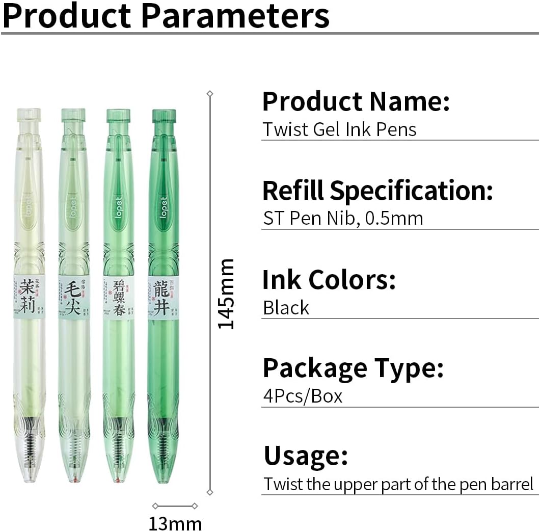 LOPET 4Pcs Bottle Pen Twist Gel Pens Quick Dry Smooth Writing 0.5mm Black Ink Green Tea Scented Refill ST Nib Students School Office Note Stationery Supplies for Girls Boys Women Men Birthday Gift