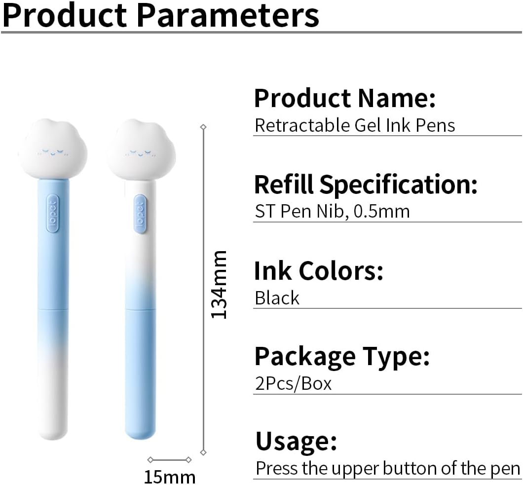 LOPET 4Pcs Cute Fluffy Clouds Retractable Gel Ink Pens 0.5mm ST Nib Black Smooth Writing Quick Dry Students School Office Note Taking Stationery Supplies for Women Men Girls Boys Birthday Gift Giving