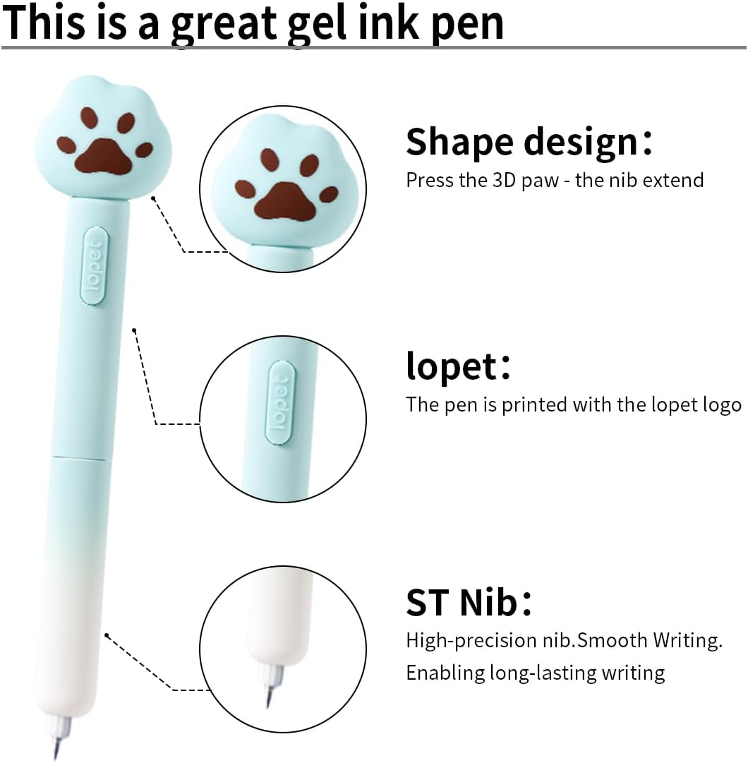 LOPET 4Pcs Soft Kitty Cat Paw Gel Ink Pens 0.5mm
