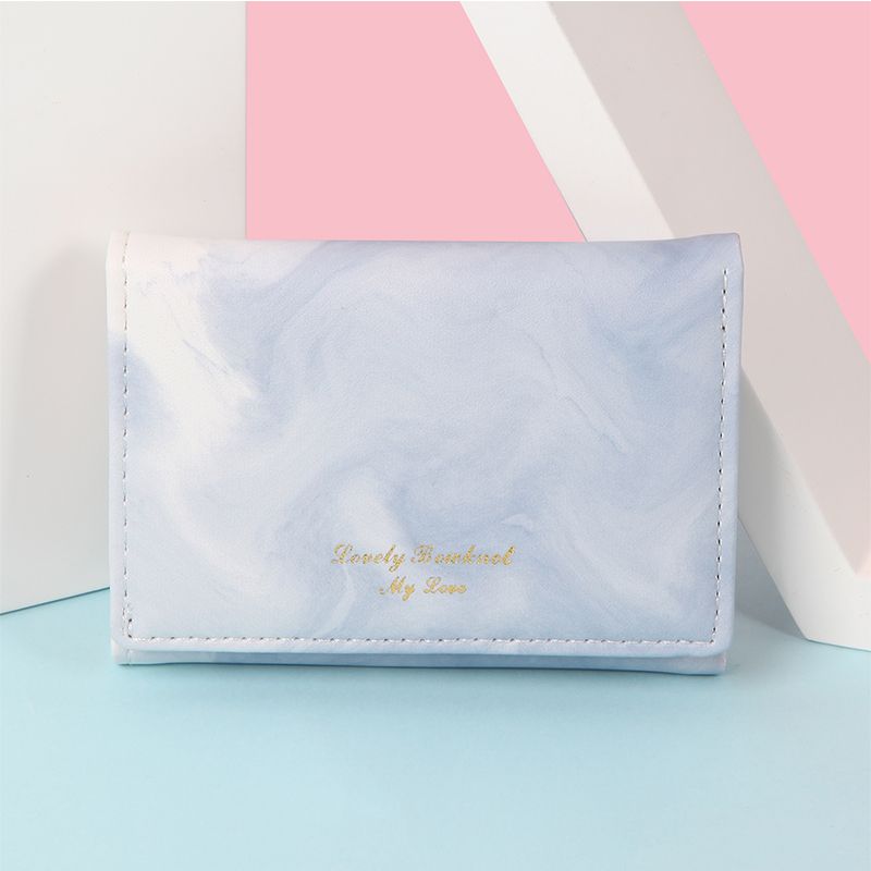 Discover the Marble Print Tri-Fold Wallet – a masterpiece of delicate design and practical elegance, crafted for women and students who adore unique, high-aesthetic accessories! This lightweight, compact wallet features a soft PU leather exterior with dreamy marble patterns in pastel green, gray, yellow, and beige, paired with gold-embossed text ("Lovely Bouhnol My Love") for a touch of luxury. Measuring just 10.5×8×1.5cm and weighing 0.057kg, it’s slim enough to slip into your pocket or bag, yet spacious enough to hold cards, cash, and IDs – perfect for daily use, parties, or as a cherished collectible!