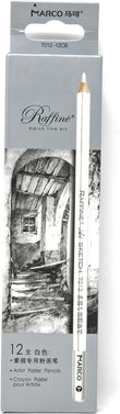 MARCO 7012 Raffine 12pcs/Pack White Pastel Drawing Pencils - Professional Artist White Charcoal Pencil
