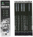 Marie's Artist Charcoal Pencil 12 Piece Set, Extra-Soft Black Paper Handle Charcoal Pencils for Drawing and Sketching