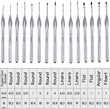 15 Pcs Miniature Paint Brushes: Our 15pc set of fine paint brushes is ideal for precision painting in all your acrylic, watercolor or oil projects. The set includes a variety of 15 brushes - Round: 4/0, 3/0, 2/0, 0, 1, 2, 4 - Liners: 4/0, 3/0, 2/0 - Flat: 0, 1 - Angular: 1 - Filbert: 1 - Angled Spot Detailer: 4/0