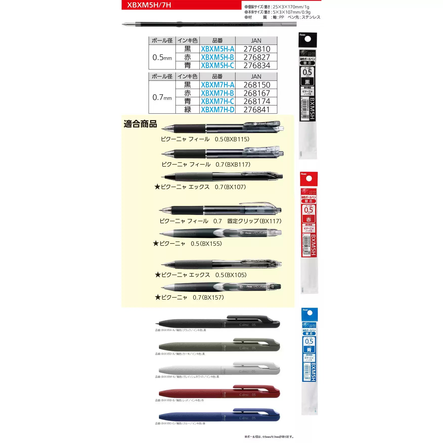 Pentel XBXM7H Ballpoint Pen Refill - 0.7 mm - Black/Blue/Red Ink - 5 Pack