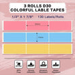 Phomemo D30 Adhesive Color Label Paper 1/2" X 1 7/8" (14mm X 50mm) 130 Labels/Roll, Black on Pink, Bule,Yellow, 3 Roll