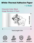 Phomemo White Adhesive Sticker Thermal Paper, 50mm width, black text, 3 Rolls in box, Each roll length is 3.5m, compatible with Phomemo T02/M02/M02S/M02 PRO/M04S/M04AS mini pocket printer.Storage for 2 years.