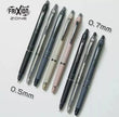 This new version of FriXion pen comes with a few new upgrades and a new version of FriXion refill that writes darker and longer. As opposed to the the regular FriXion refill, the new FriXion Zone refill comes in metal encasing with “Premium FriXion Ink”, which writes 30% higher density in black, and 15% higher density in black and blue. The new metal encasing is thinner, allowing the ink capacity to increase by 70%. Two pen upgrades include a more fitted grip section to reduce rattling of the refill, as well as an additional spring to soften the impact of knocking. FriXion Zone comes in muted tones as well as more professional grip such as birch wood and marble resin.