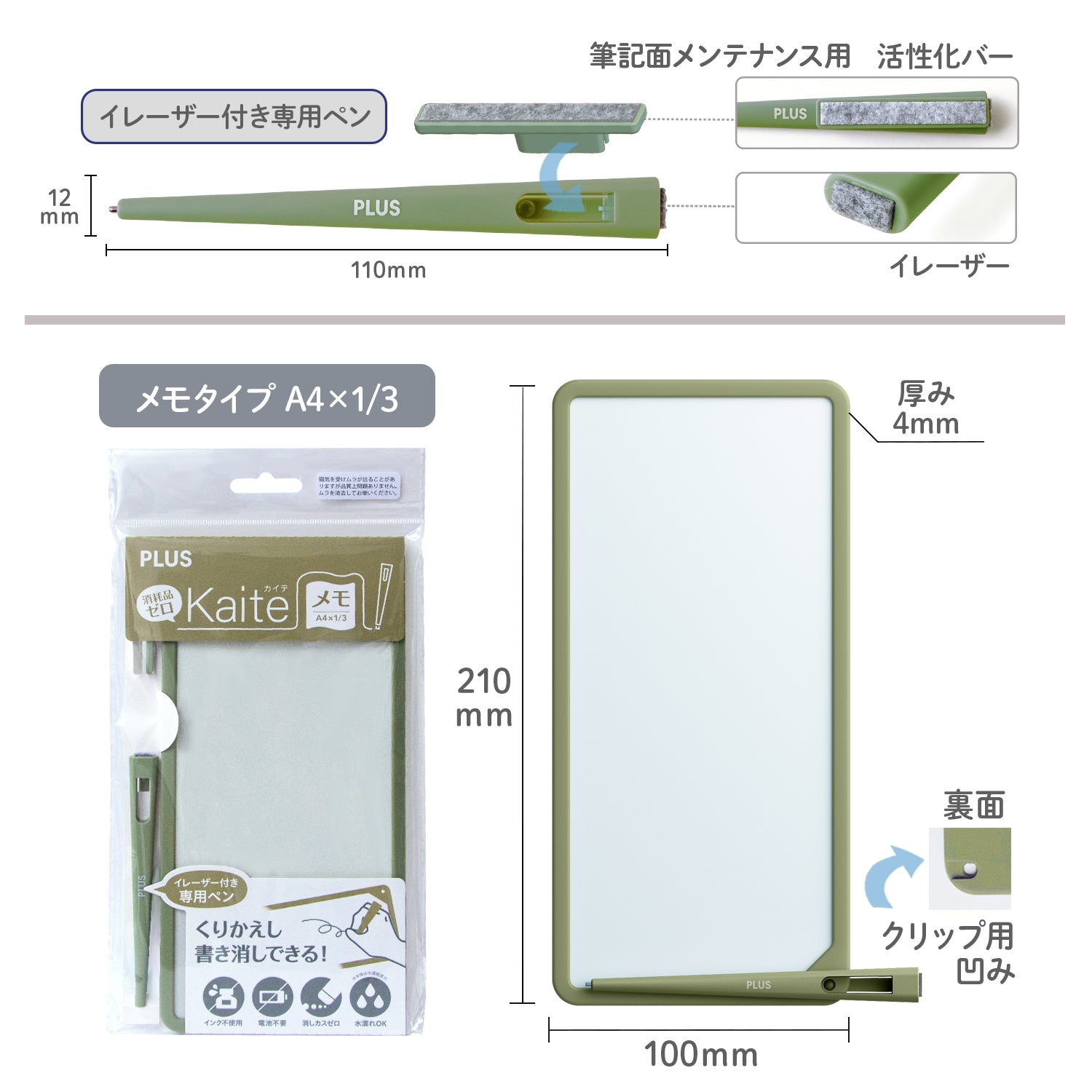 The Kaite Memo by PLUS is a reusable writing pad designed for smooth, paper-like writing without waste. Made with a special film surface and included with a dedicated pen, it lets you jot down notes and erase them with the magnetic brush —no paper, no mess. Ideal for eco-conscious users who enjoy the tactile feel of handwriting. No battery needed.