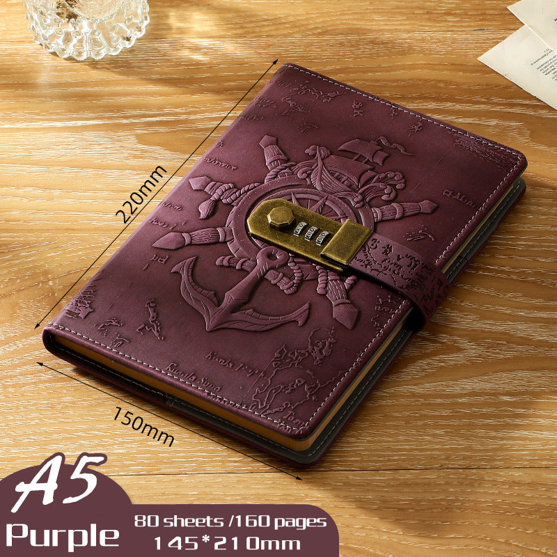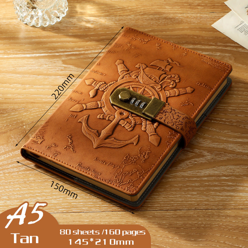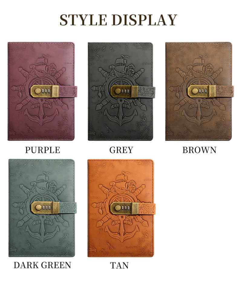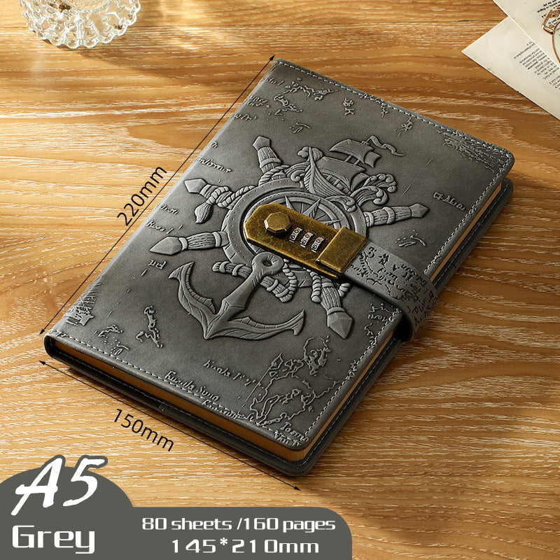 Retro Pirate Lock Diary 3D Carved European Style Locked Notebook A5
