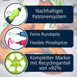 Practical cartridge system for a sustainable painting experience - Each cartridge purchase saves plastic and allows an easy colour change