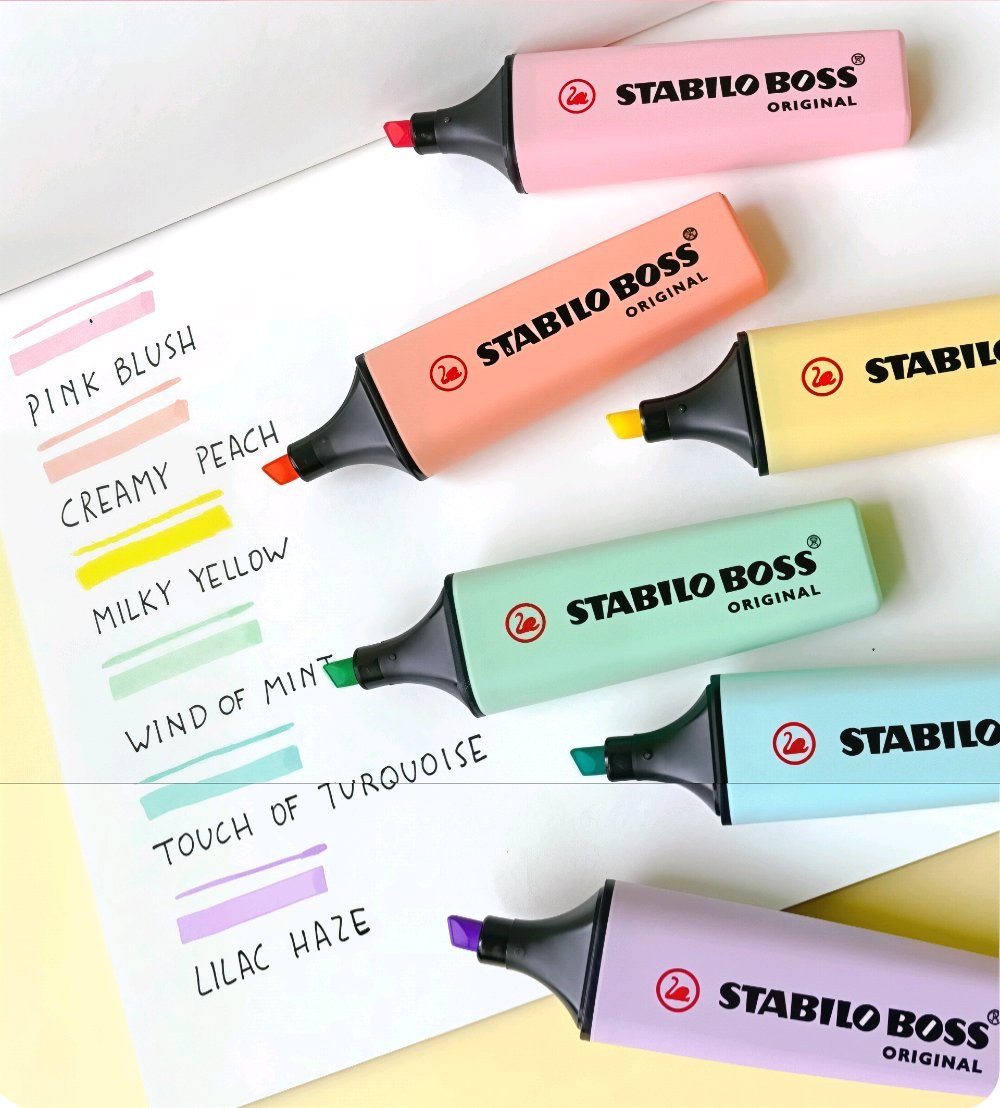 Ideal for gift-giving or personal collection, these highlighters combine German quality craftsmanship with Instagram-worthy aesthetics. Whether you're studying for exams, planning your week, or creating artistic layouts, the Stabilo BOSS Mini Pastel set brings both functionality and visual appeal to your stationery collection. Each marker is refillable and features the signature BOSS click mechanism for secure capping.